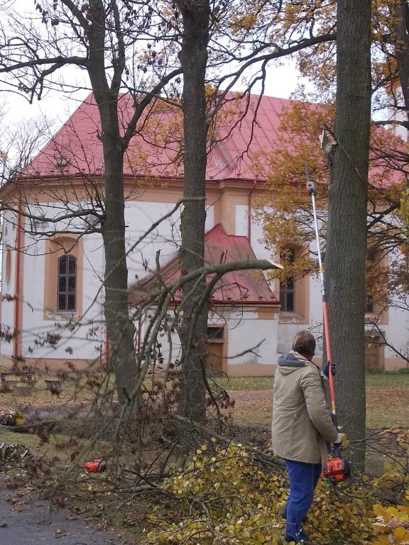 Prořezávání alejky podél zámku směrem od Žalmanova.