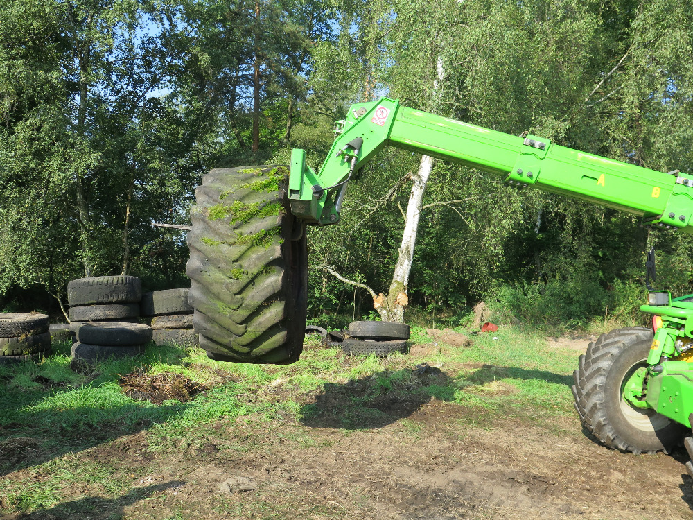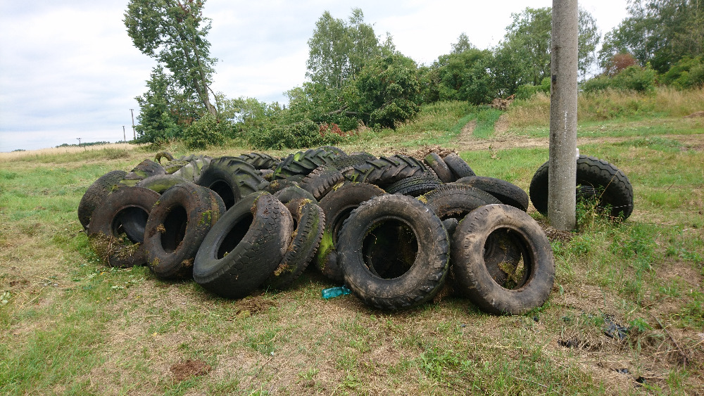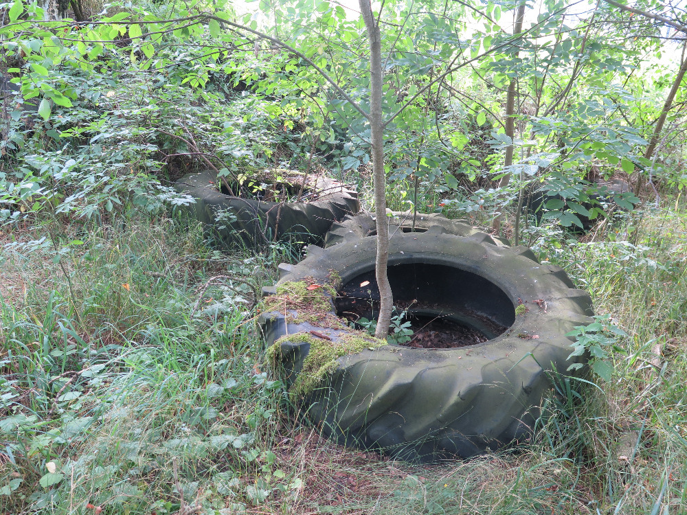 Spousta pneumatik již zarůstala do zeleně.