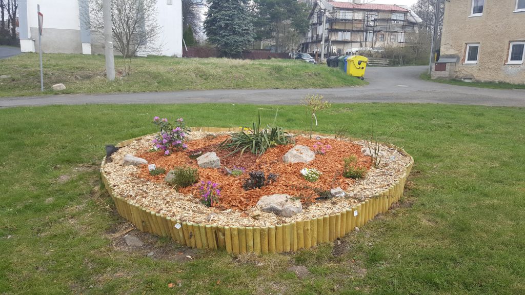 Zaměstnanci obce vytvořili na nevyužívaném palouku "ledvinky" se zelení.