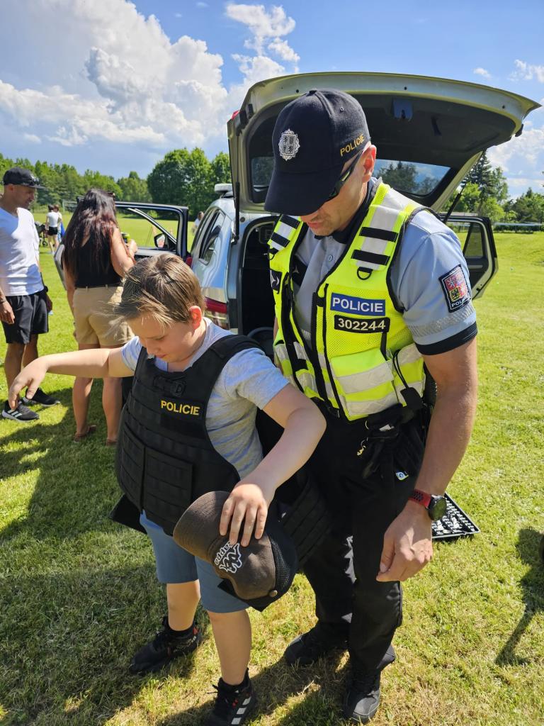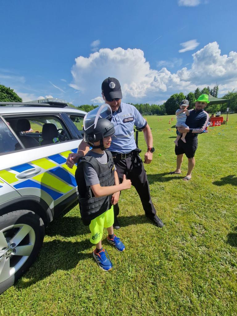 Děti si mohly vyzkoušet ppracopvní pomůcky policistů.